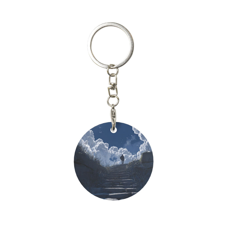 Ladder - to - Clouds Artistic Round Metal Keychain
